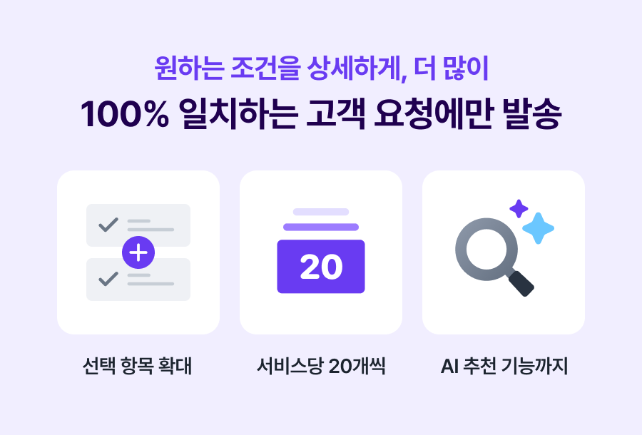 설정한 조건과 100% 일치하는 요청에만 견적 발송